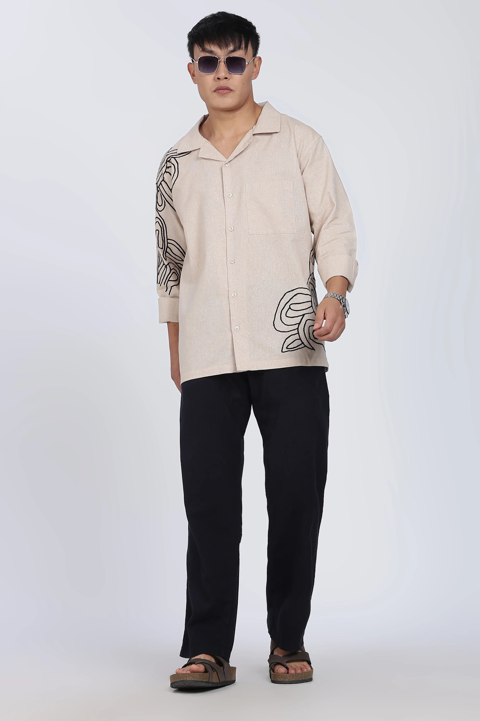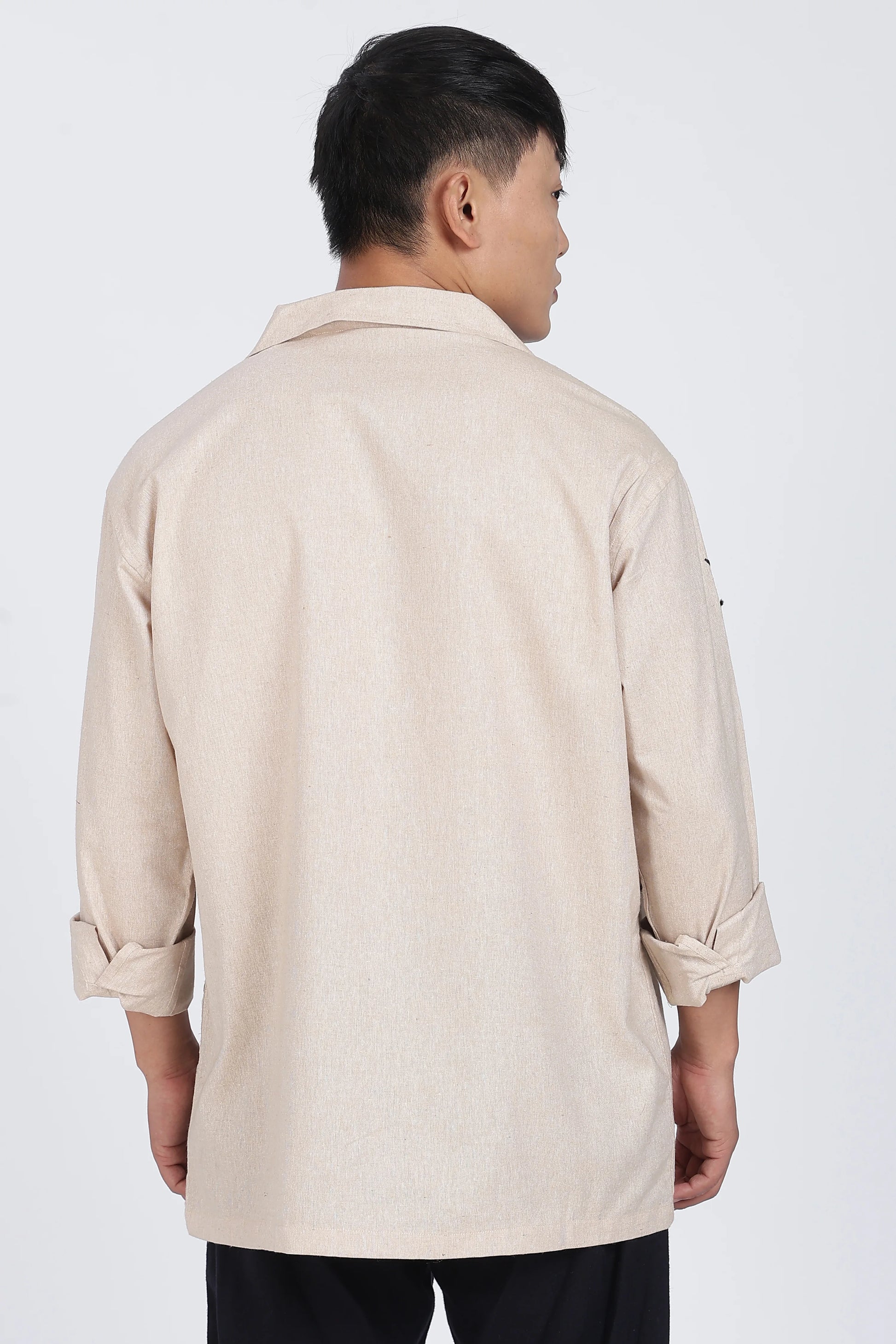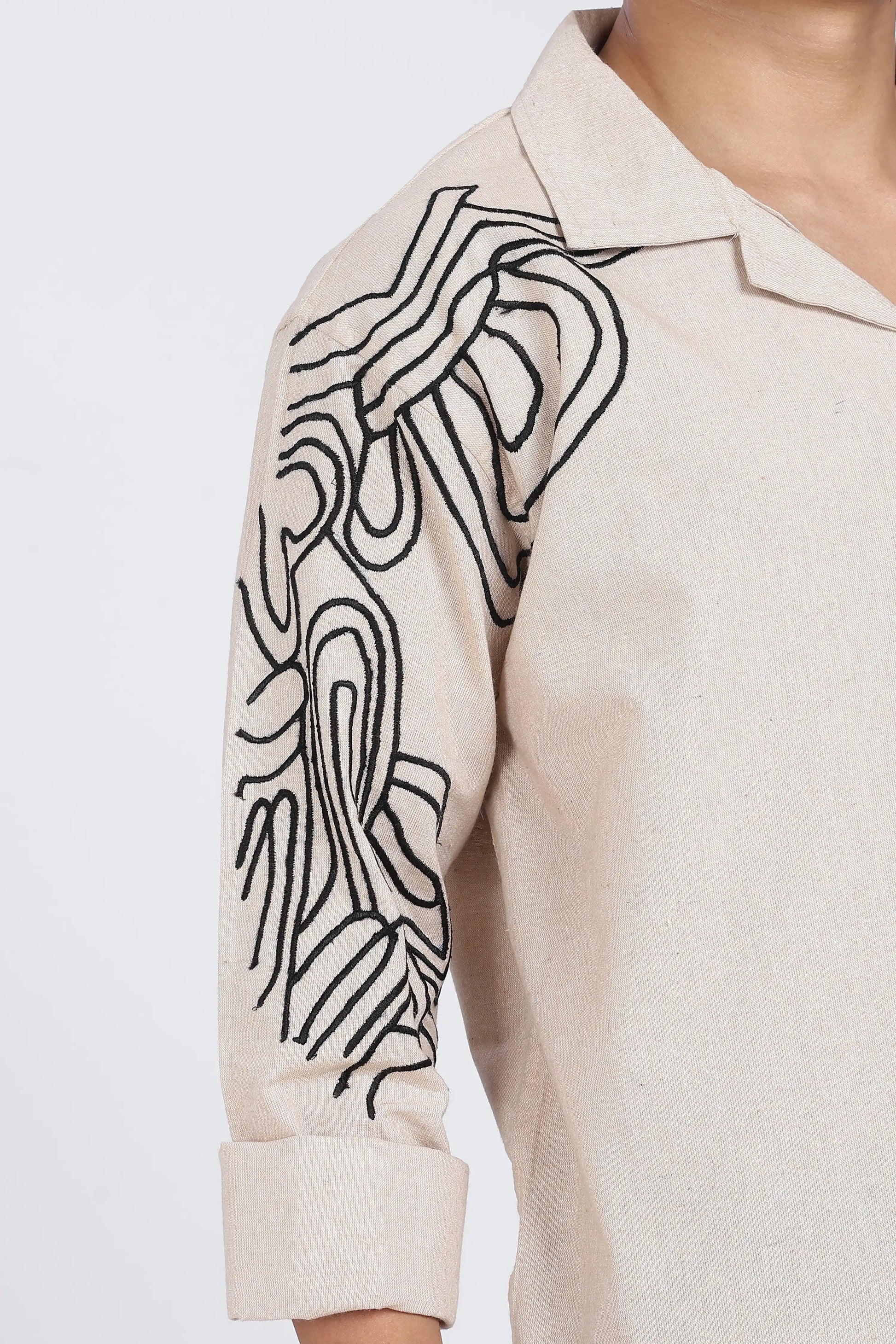 Beige Embroidered Summer cotton Linen Shirt