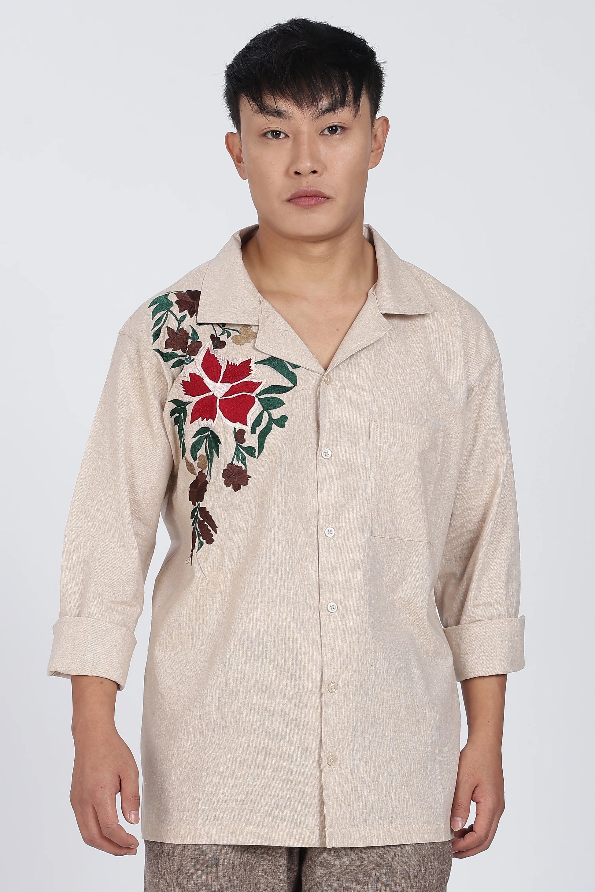Rose Embroidery Linen Shirt